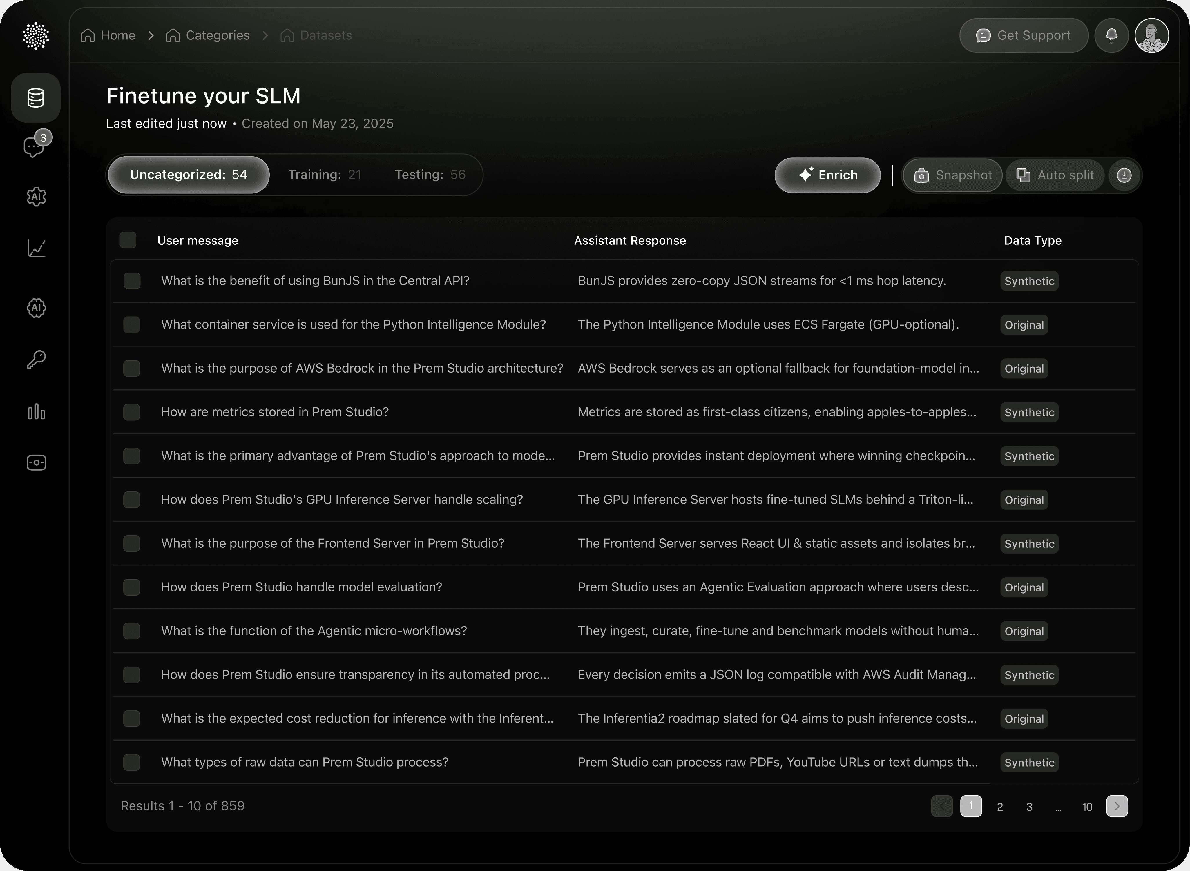 Prem enables teams to design & fine-tune specialised LLMs optimised for their workflows - outperforming frontier models in speed, accuracy and cost.